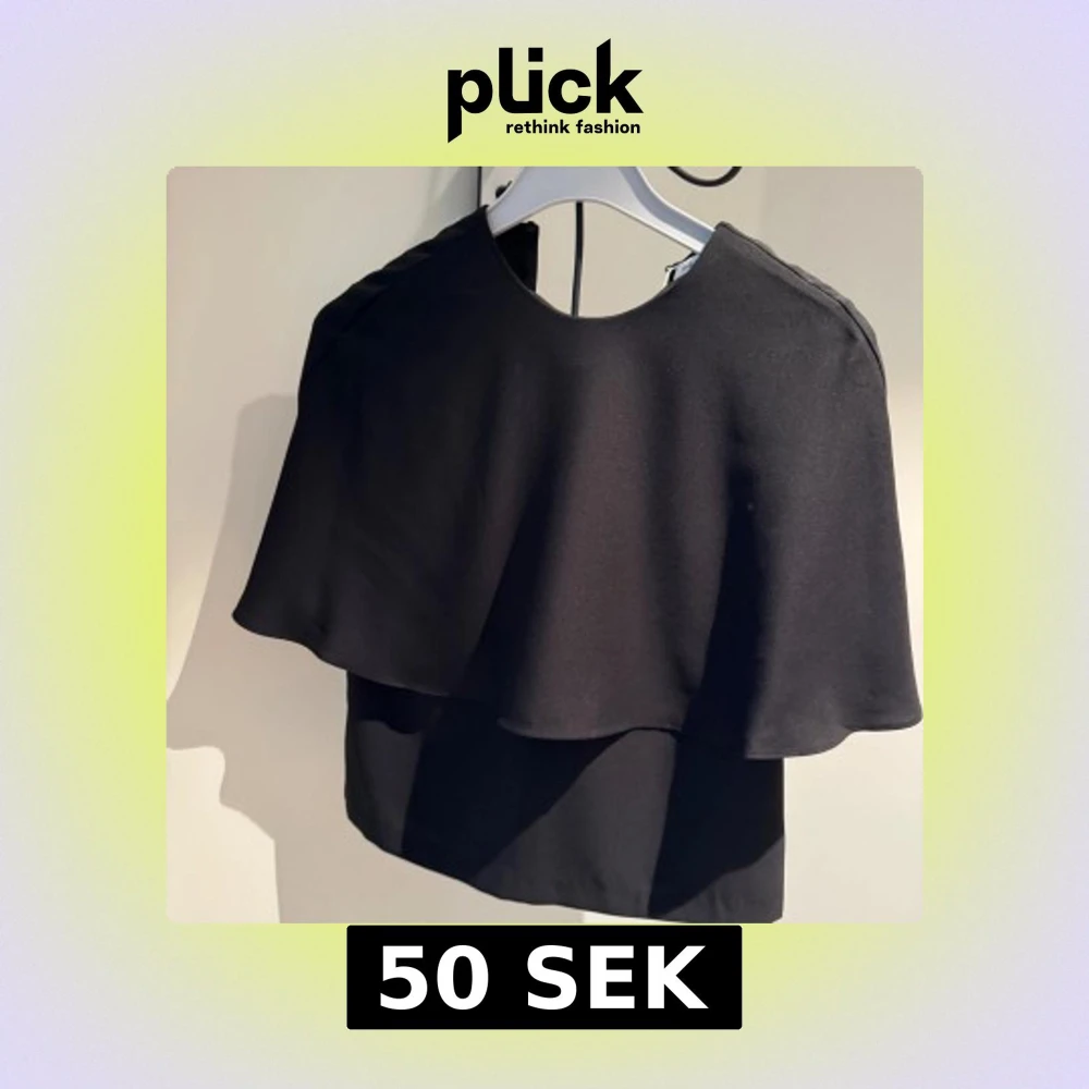Stilren svart blus med cape-liknande lager över axlarna och rund halsringning. Toppens flowiga tyg ger en cool och elegant siluett, perfekt för att sticka ut. Passar dig som gillar minimalistisk men unik stil.