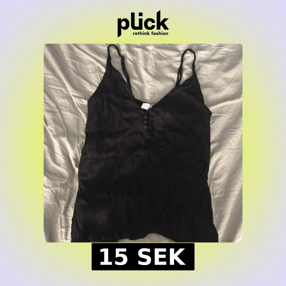 Supersnygg svart linnetopp från Stylein i storlek XS. Toppen har tunna axelband, v-ringning och ribbad struktur. Dekorativa knappar framtill ger en extra touch. Det är ett litet hål vid v-ringningen som enkelt kan sys