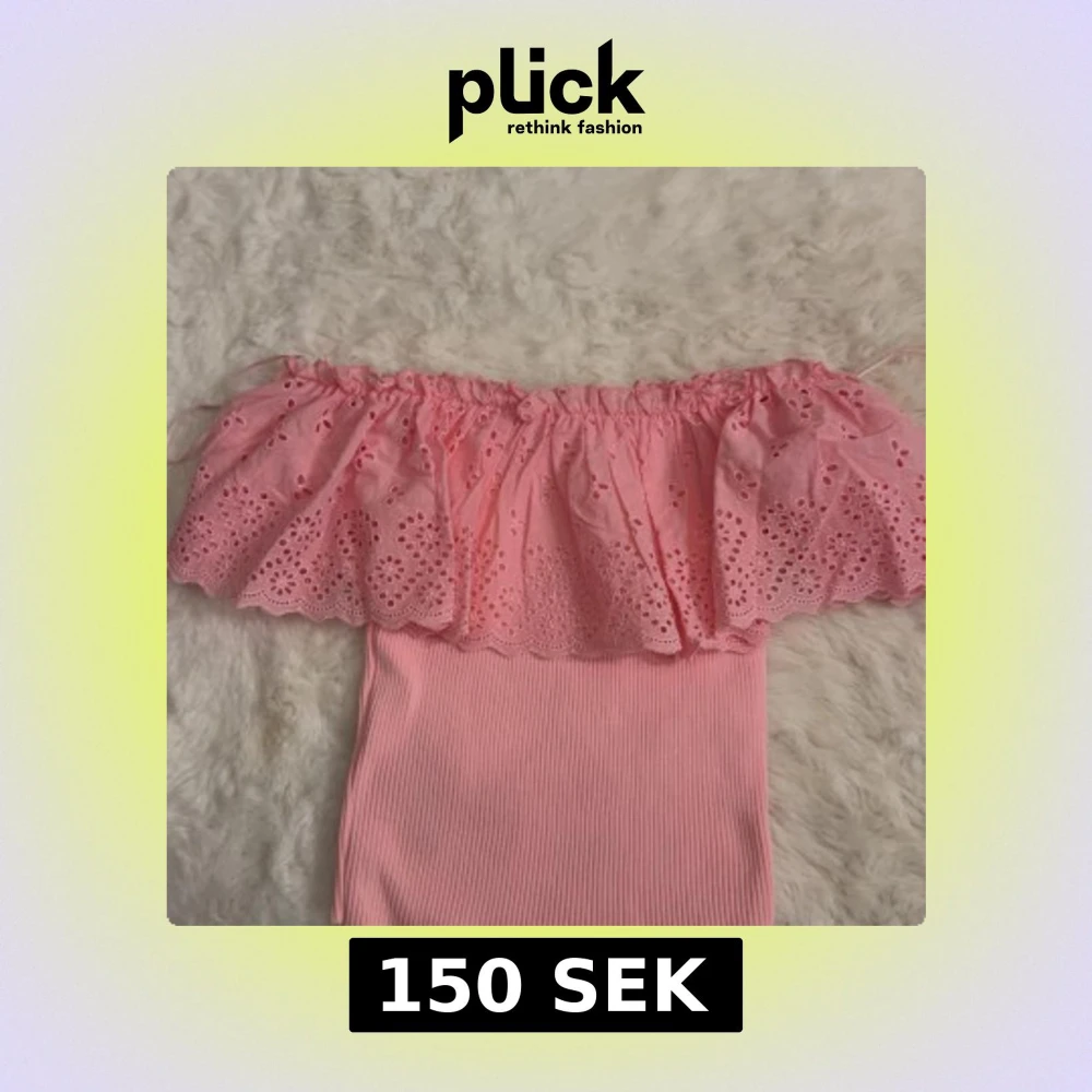 Supersöt rosa offshoulder topp med bred volang upptill och broderade blommor. Toppen är ribbad nedtill och har en axelbandslös design som ger en somrig vibe. Perfekt för dig som gillar romantiska detaljer och en feminin look. Tröjan är köpt utomlands!