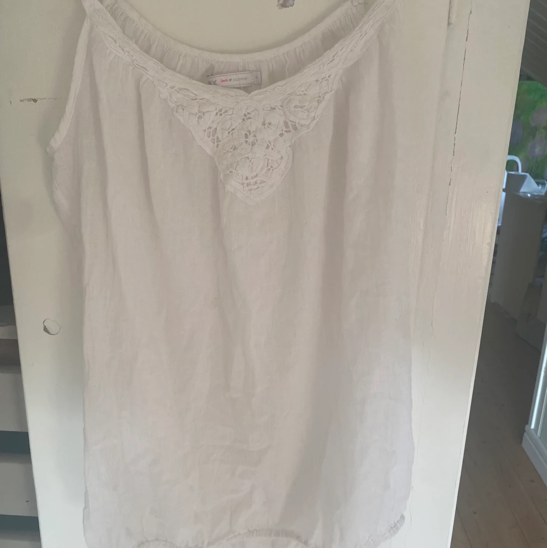 Vitt linne i storlek S. Linnet har inga skador. Kontakta mig vid köp💕