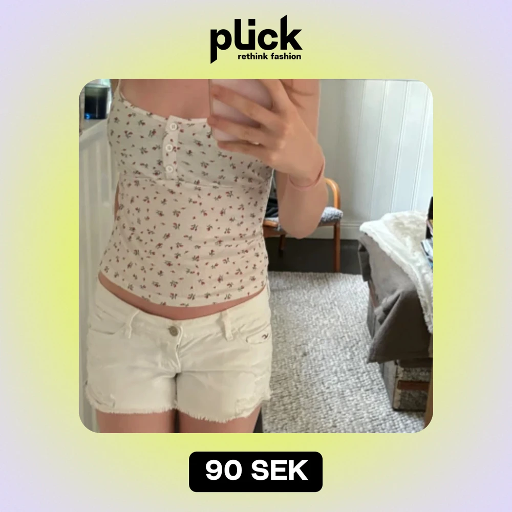 Vitt linne med röda små blommor på, perfekt till sommaren!!💕💕