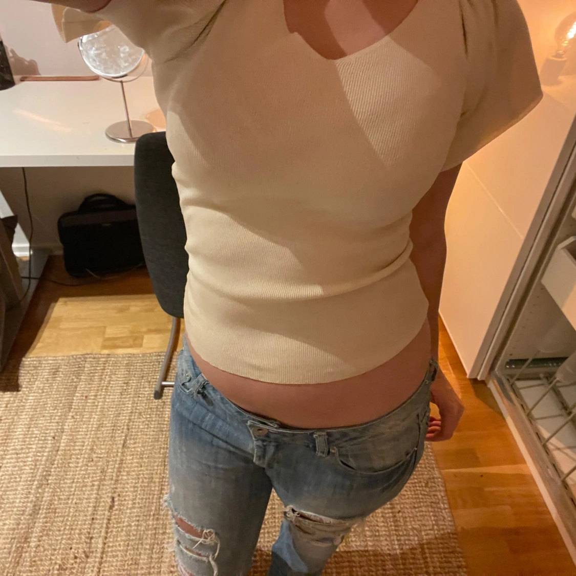 En sparsamt använd supersnygg tröja. Har ett hål i ena ärmen som framgår i de sista bilderna, men inget som syns! Hör av dig vid frågor eller fler bilder🥰