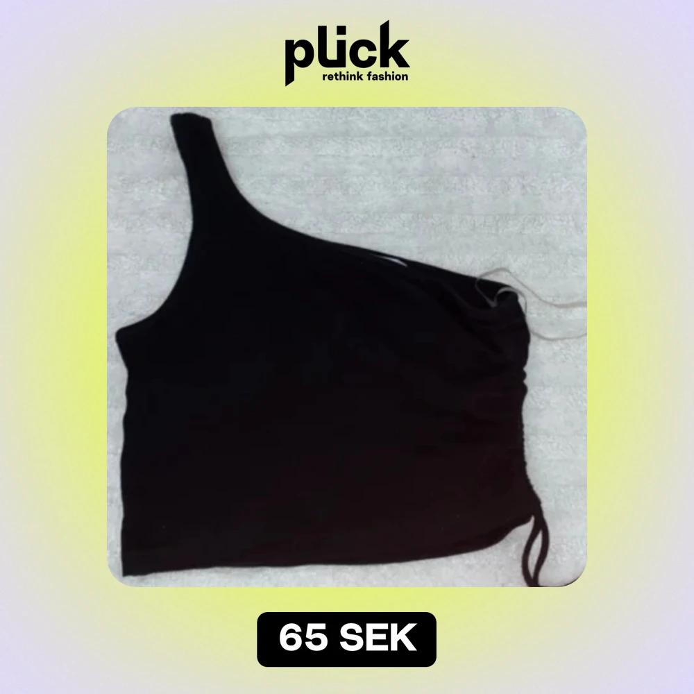 En kort enarmad svart topp. I storlek M frĂ„n newYorker. Ăr anvĂ€nd fĂ„ gĂ„nger.