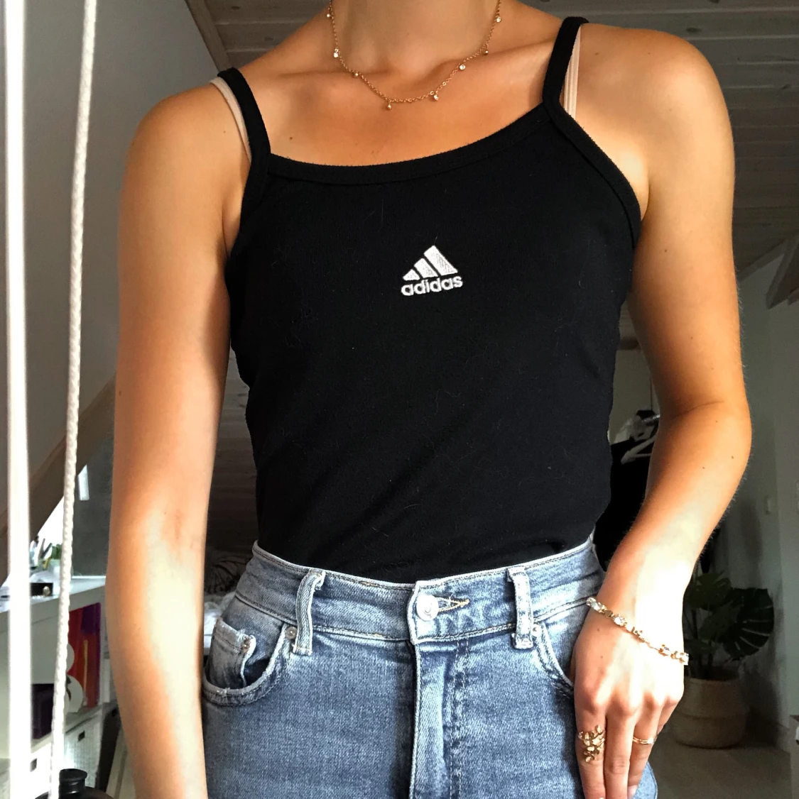 Ett svart adidas linne i xs/s. Det är äkta vintage från 90-talet och i ett mjukt bomullstyg. (Säljer även ett likadant rött linne ifall du är intresserad och priset på båda kan såklart diskuteras☺️💕)