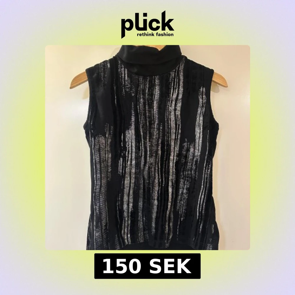 Snygg svart ärmlös polotopp med vertikalt silvermönster. Perfekt för en stilren look med en touch av glamour. Polokragen ger en elegant känsla.🌟