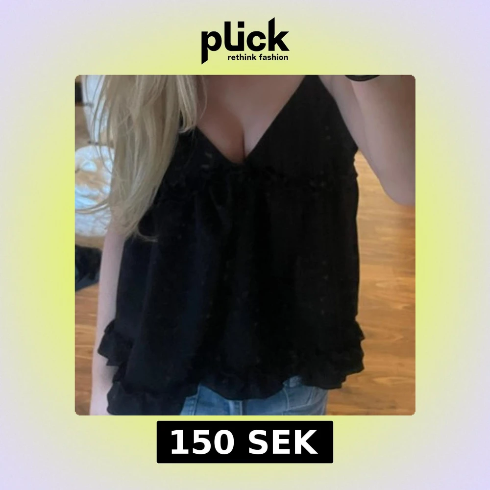 Säljer en stilren svart ärmlös topp med volangdetaljer. Perfekt för en avslappnad men chic look. Passar bra till jeans eller kjol.