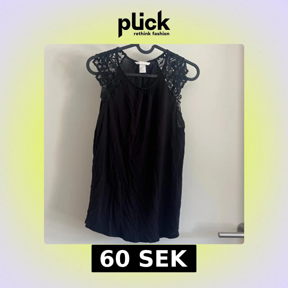 Svart ärmlös topp från H&M med snygga spetsdetaljer över axlarna.