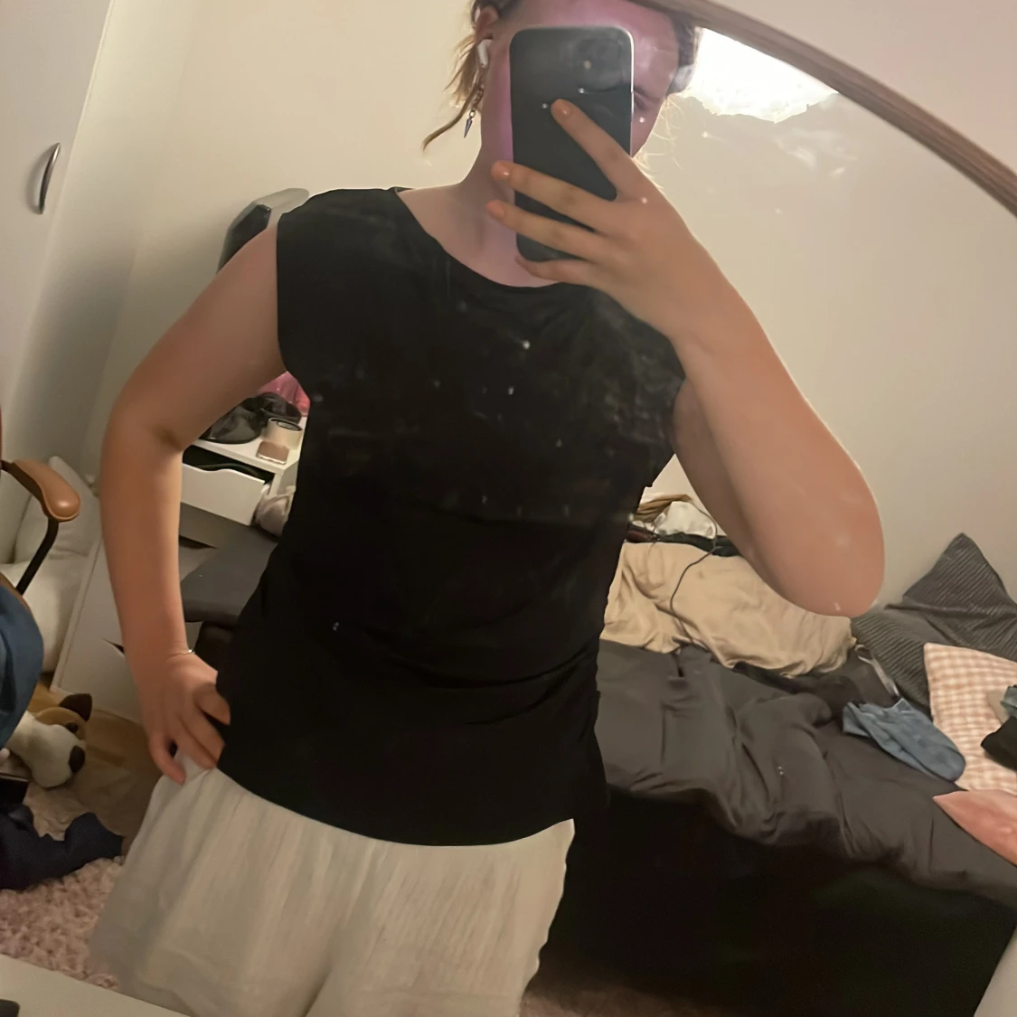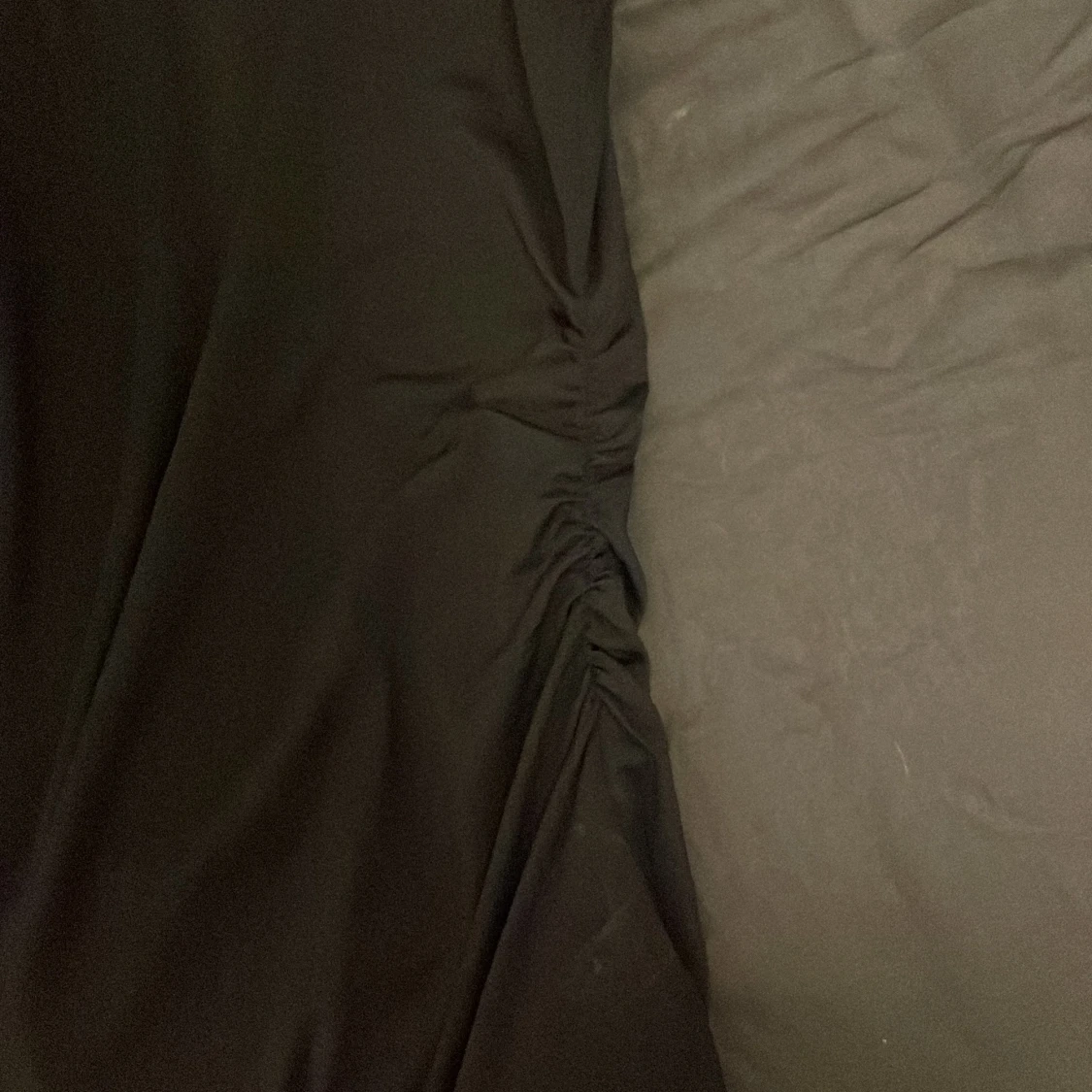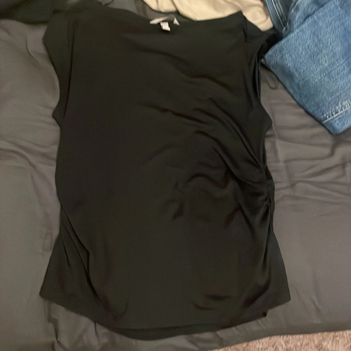 Svart ärmlös topp från H&M i storlek L. Toppen har en enkel och stilren design med rund halsringning och lätt rynkade detaljer på ena sidan för en snygg twist. Tillverkad i ett mjukt och stretchigt material som känns skönt mot huden.