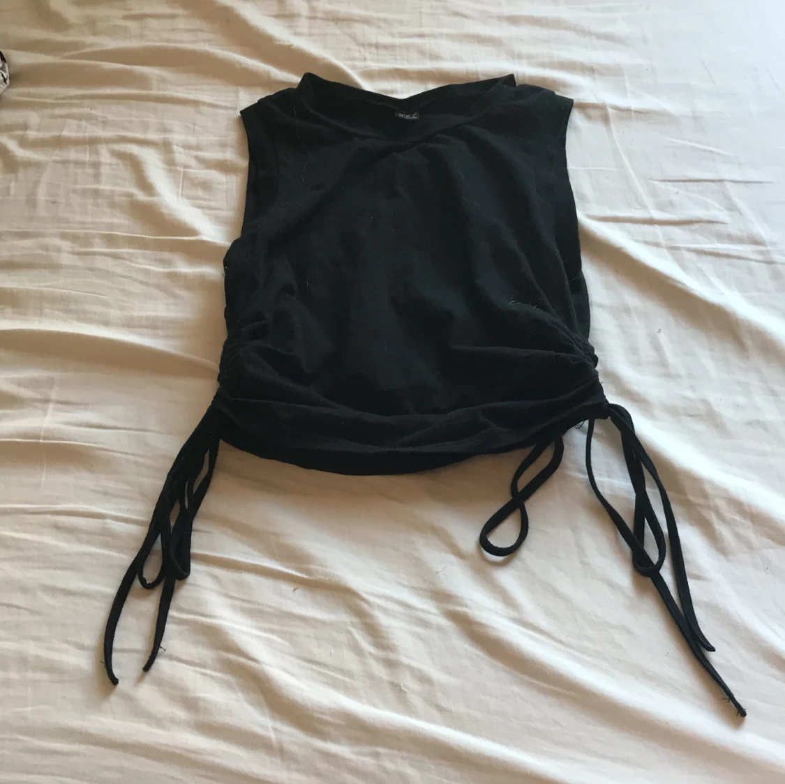 Snygg svart ärmlös topp från Shein med knytband i sidorna för en justerbar passform. Perfekt för en stilren look.💞