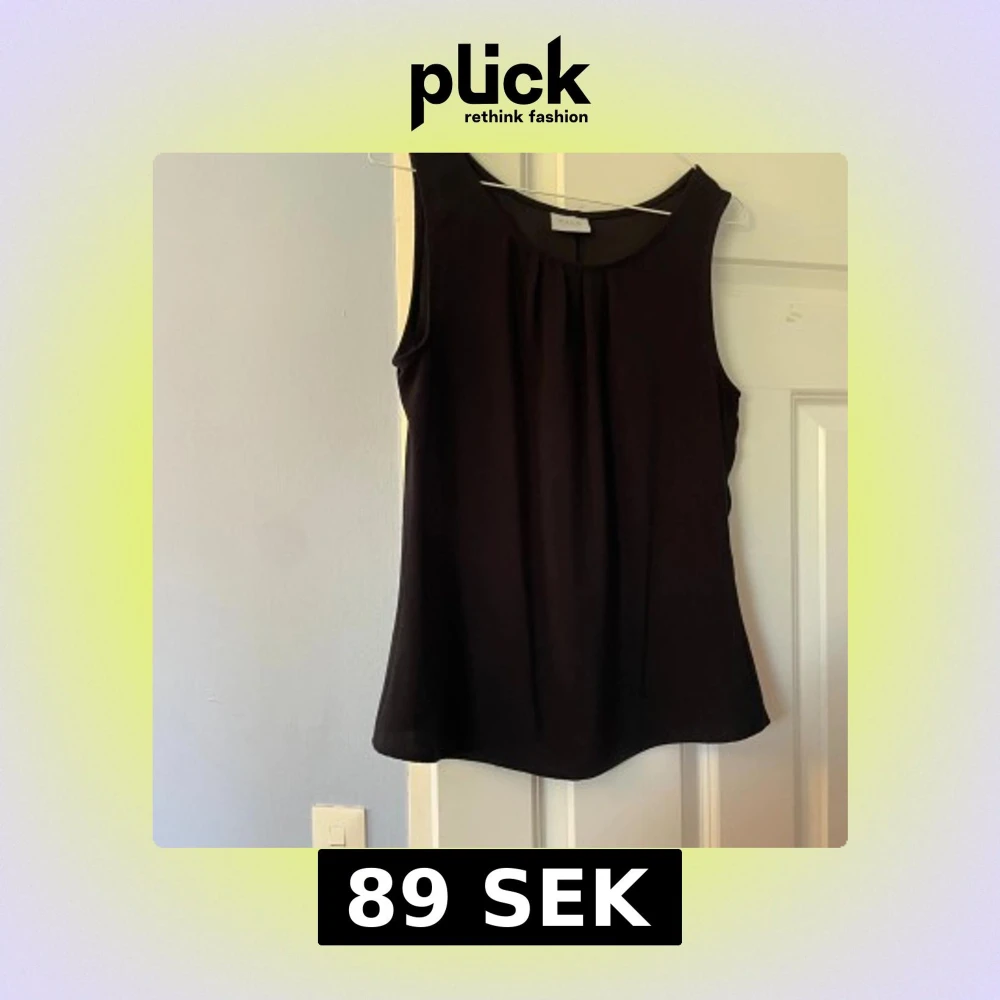 En stilren svart ärmlös topp från Vila med rund halsringning och lätt rynkdetalj framtill. Toppen har en rak passform och är tillverkad i ett tunt, mjukt tyg som faller snyggt. Perfekt att matcha med jeans eller kjol för en clean look.