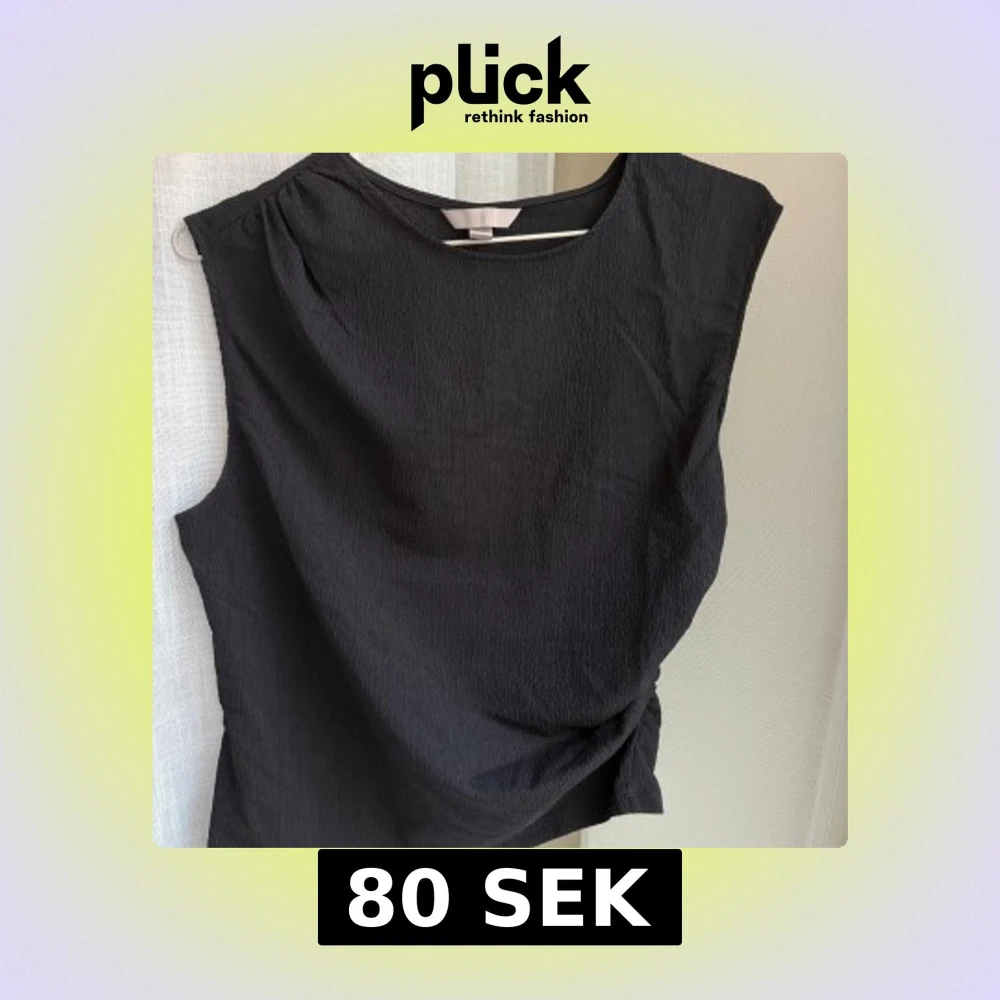 En snygg svart topp med rund halsringning och lätt strukturerat tyg. Toppen är ärmlös och har en rak passform på ena sidan och med en liten innerbenssöm på sidan.