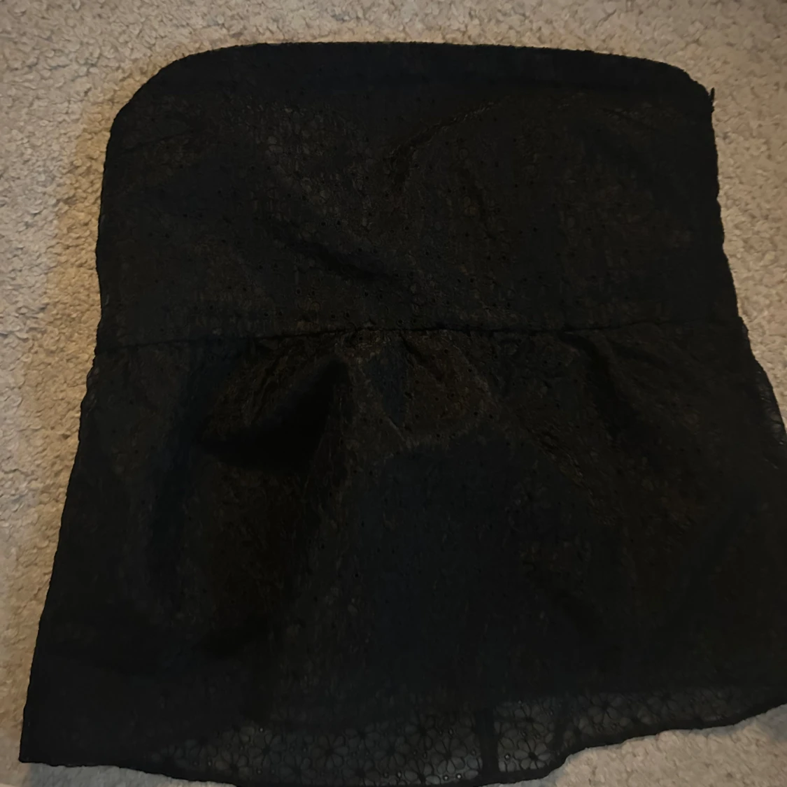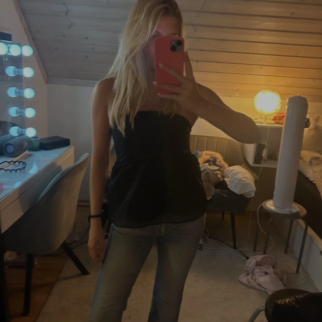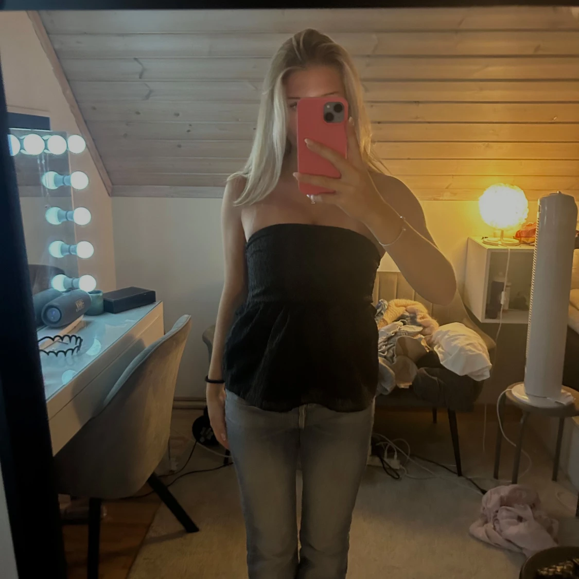 Säljer denna assnygga bandautopp i spetsliknande tyg (se bild 4)🖤Såå fin till fest, har dragkedja på sidan🥰är i mycket bra skick!