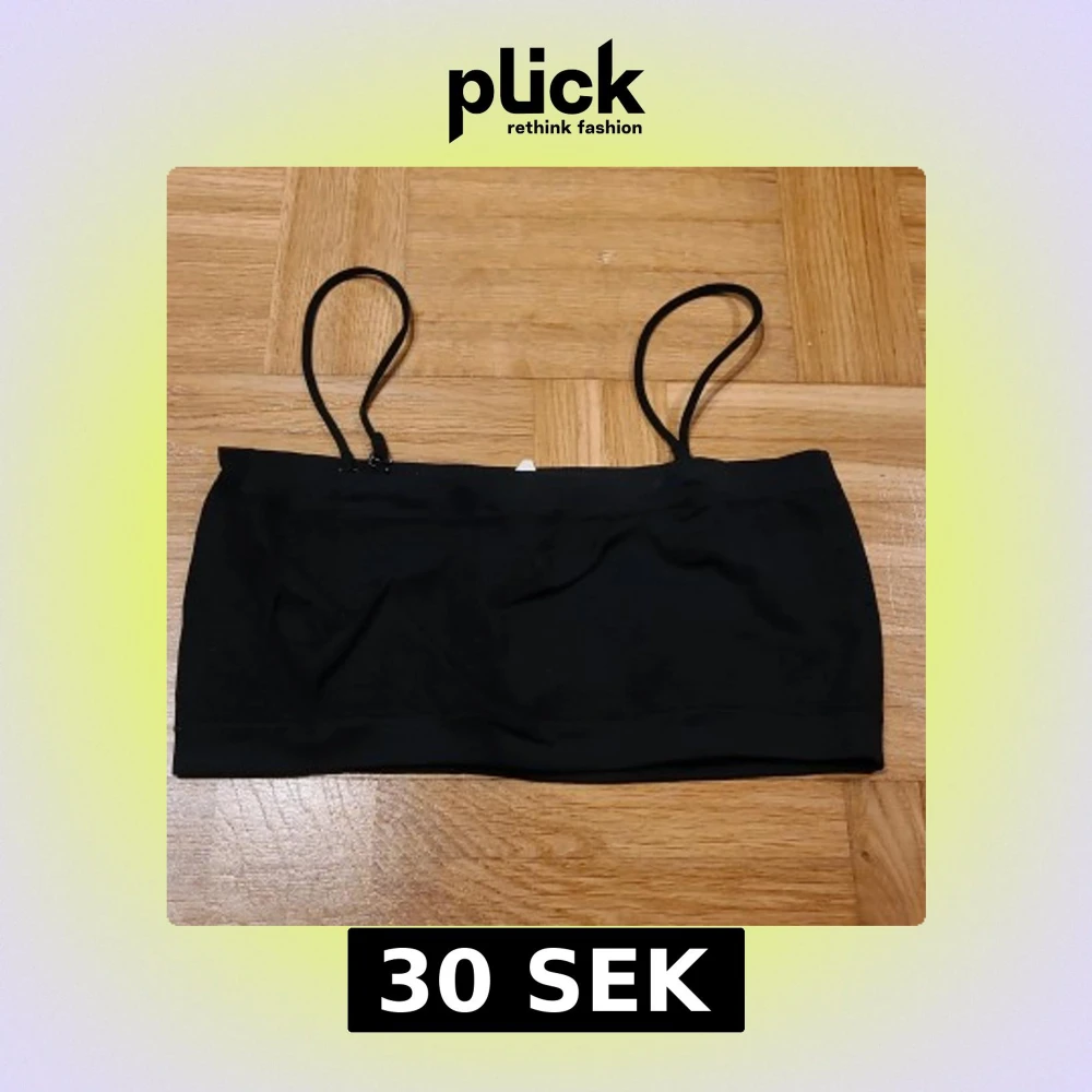 Svart bandeau topp med tunna axelband från Secret's Essential. Enkel och stilren design, perfekt att bära under andra plagg eller som den är. Tillverkad i stretchigt material med 80% polyamid och 20% elastan för en bekväm passform.