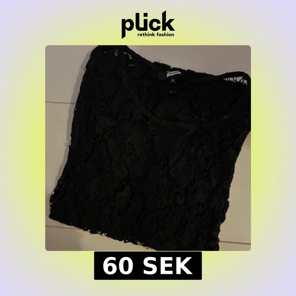 Svart blus från Bik Bok i genombruten spets med blommigt mönster. Blusen har rund halsringning och är ärmlös, perfekt för att skapa en cool och trendig look. Materialet är lätt och luftigt, vilket gör den enkel att styla över ett linne eller bralette. Perfekt att ha över ett linne eller fest tröja. Pris 60kr och storlek s.