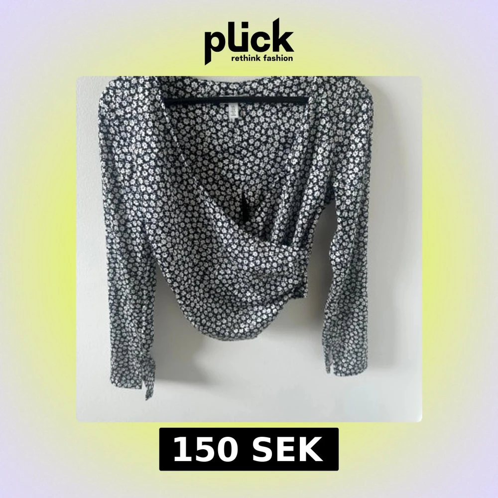 Säljer en svart omlottblus från H&M med vitt blommönster. Blusen har långa ärmar och en snygg omlottdesign framtill. Perfekt för dig som gillar blommiga mönster och vill ha en feminin look.
