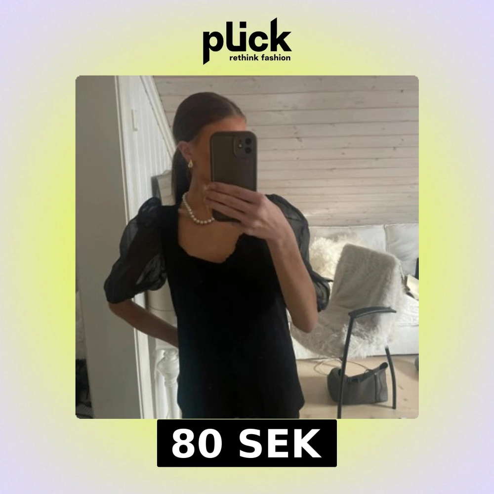 Elegant svart blus från Bubbleroom med puffiga transparenta ärmar och en stilren design. Perfekt för en chic look.