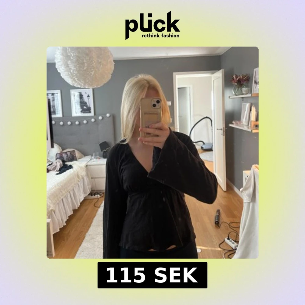 Svart blus från Gina Tricot i storlek M. Toppen har långa ärmar, v-ringning och knytband i midjan.