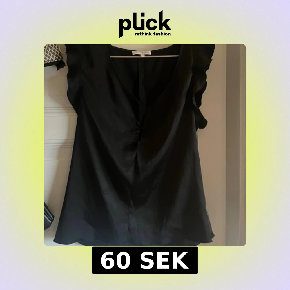 Supersnygg svart blus från Kookai i glansigt satinliknande material. Blusen har v-ringning och volangdetaljer vid ärmöppningarna som ger en cool touch. Perfekt för dig som gillar stilrena och trendiga plagg med det lilla extra.