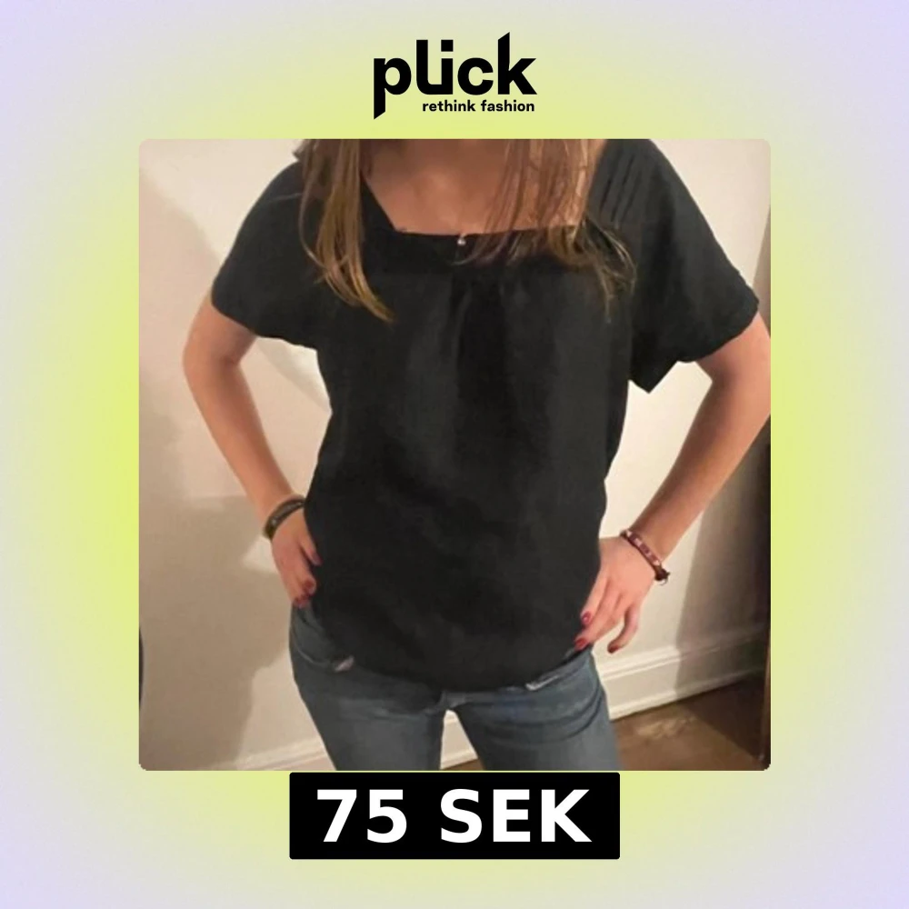Snygg svart blus med korta ärmar och rund halsringning. Använd 1-2 ggr, nyskick. Passar strl XS-M