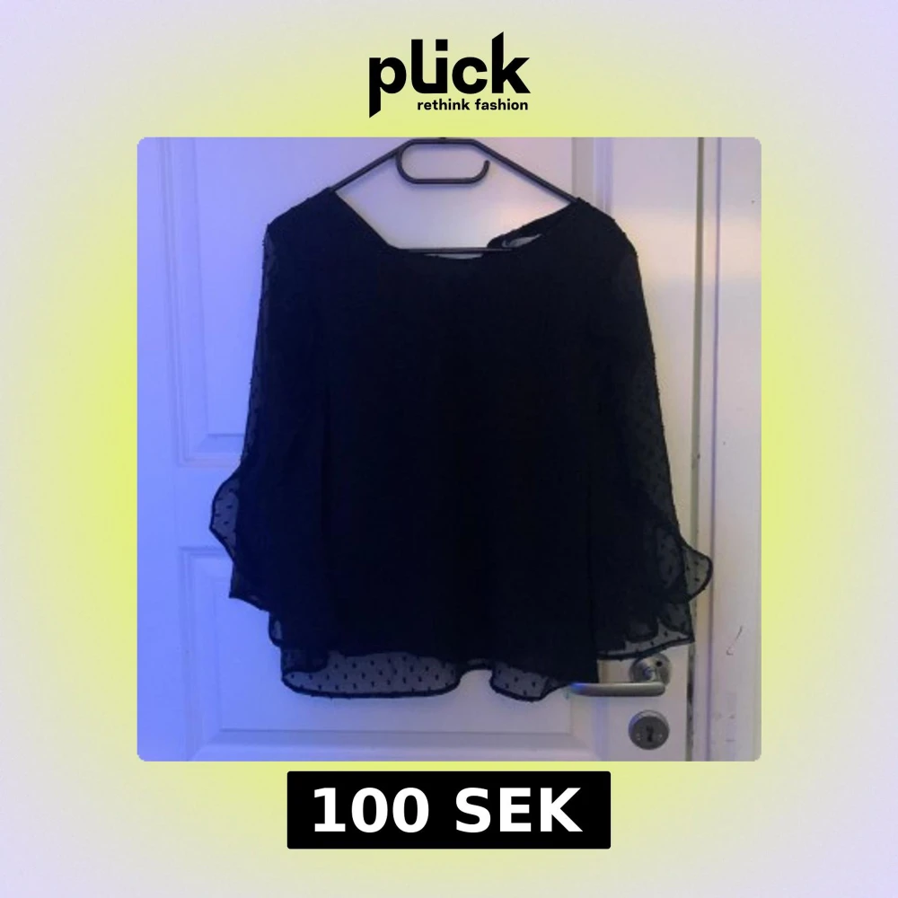 Snygg svart blus med ett diskret prickigt mönster från H&M. Blusen har långa, fladdriga ärmar och en luftig passform. Perfekt för en stilren look.