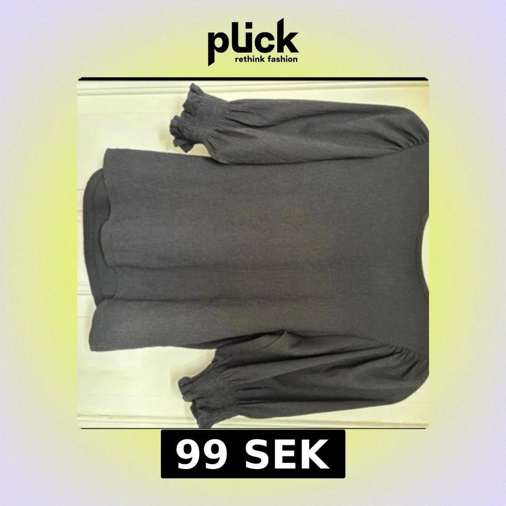 Svart blus från Lindex med puffiga trekvartsärmar och smock vid ärmslut. Blusen har en rund halsringning och är tillverkad i ett lätt, strukturerat tyg som ger en snygg och stilren look. Perfekt för dig som gillar trendiga detaljer och enkel design.