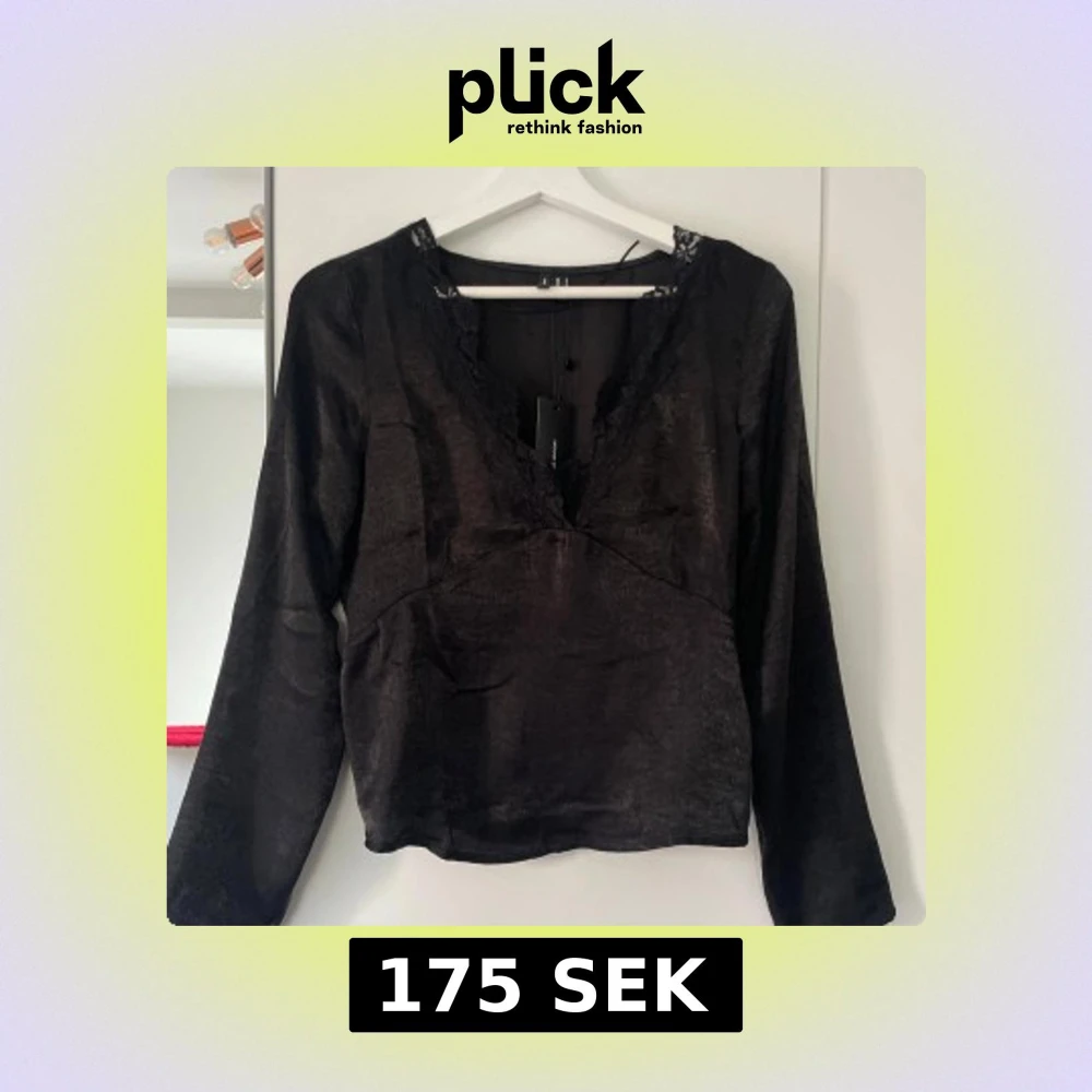 Snygg svart blus från Vero Moda med v-ringning och spetsdetaljer. Långärmad modell i glansigt material. Helt oanvänd🖤✨