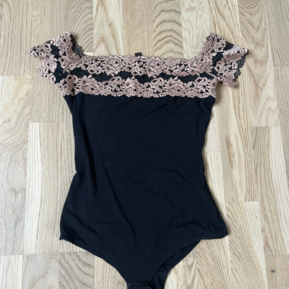 Supersnygg svart body från Intimissimi med offshoulder och breda spetsdetaljer i beige över axlarna. Storlek S🌸
