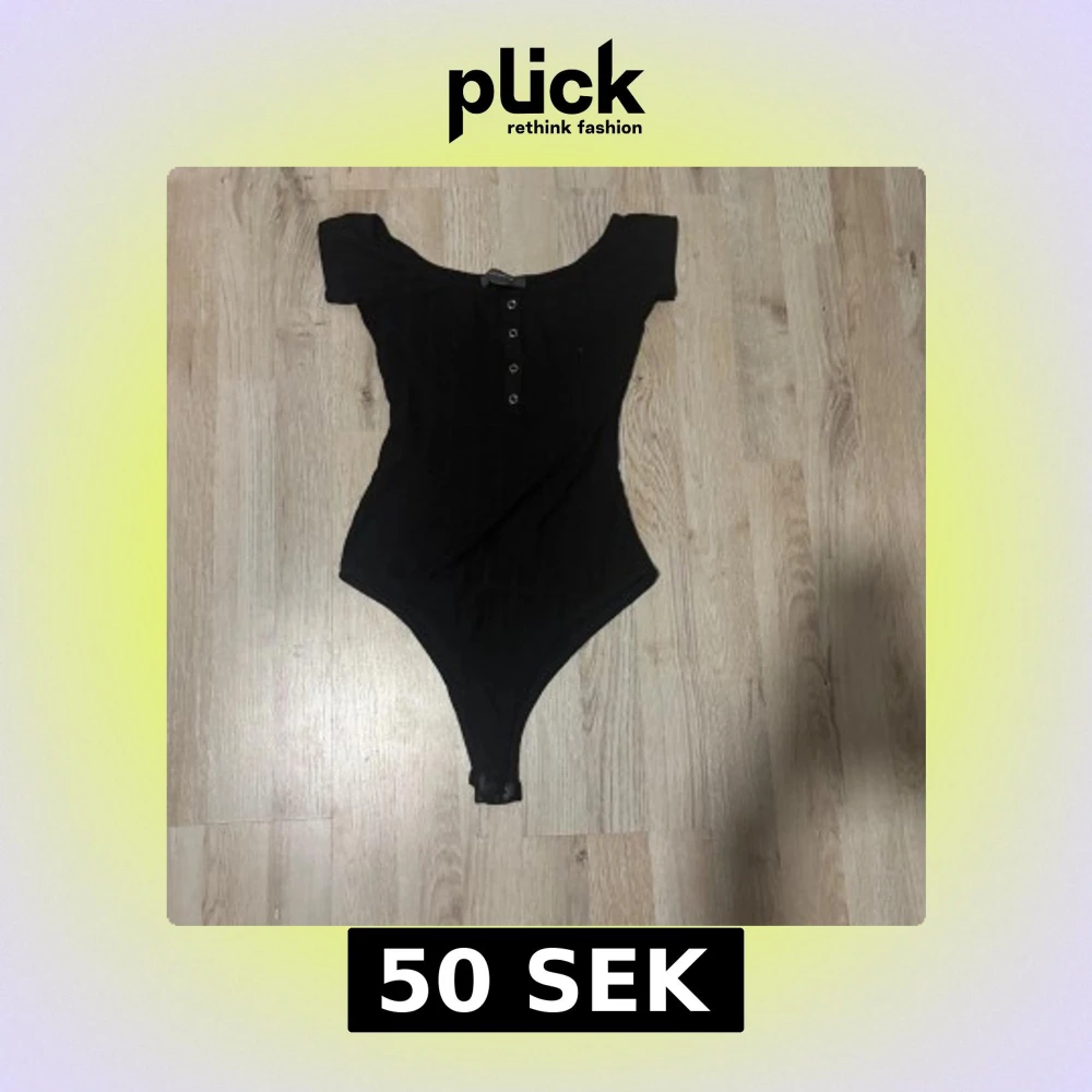 Snygg svart bodysuit från Primark med knappar framtill. Perfekt för en stilren look. Tillverkad i Turkiet.