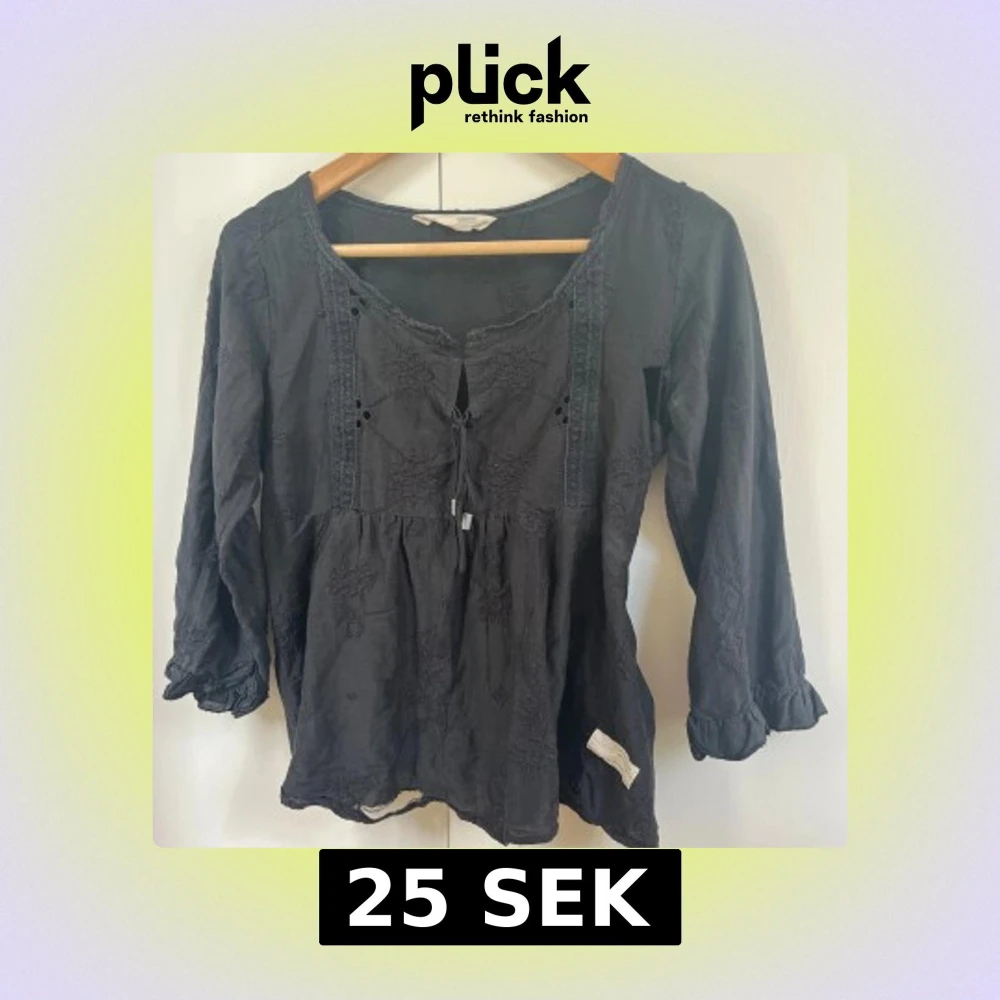 Svart blus från Odd Molly med broderade blommor och knytning framtill. Mycket hål som ni ser men annars jättefin!! Så om du gillar och sy och vill ha ett projekt här finns ett😅 säljs pga av att jag inte orkar sy/kan knte sy. Väldigt träkigt för det ör en väldigt fintröja som jag tyckt mycket om.❣️❣️😢