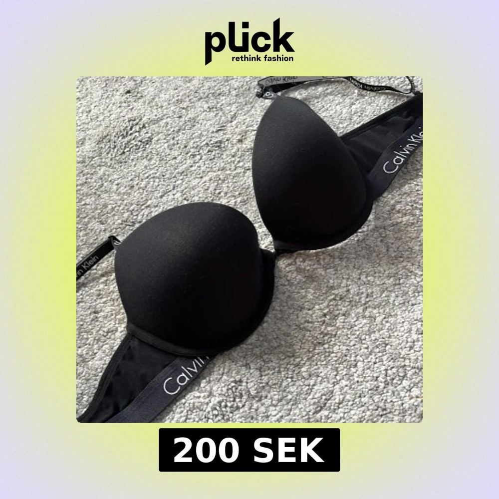 Svart bh-topp från Calvin Klein med vadderade kupor och elastiska band med logga. Enkel push up design😗
