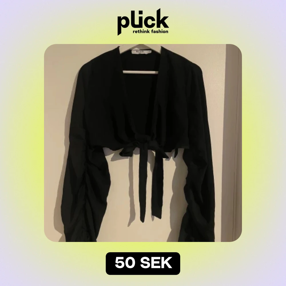 Svart kort blus med knytning fram som går att justera självmant. Endast använd 1-2 ggr.