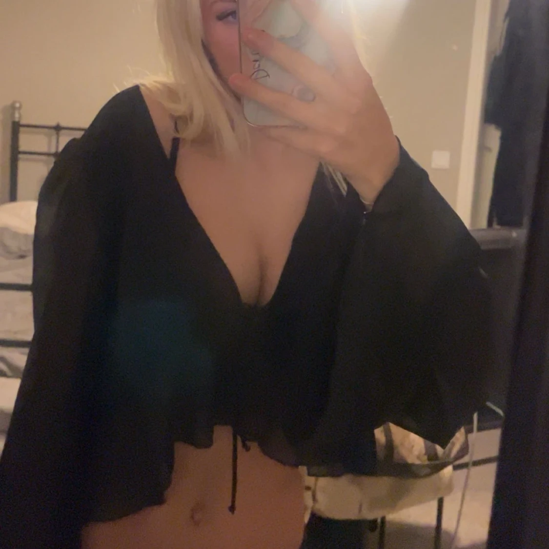 Säljer en svart, croppad blus med v-ringning och långa, vida ärmar. Toppen har en snygg snörningsdetalj framtill och är gjord i ett tunt, flowy material som ger en luftig känsla. Perfekt för dig som gillar trendiga och stilrena plagg.