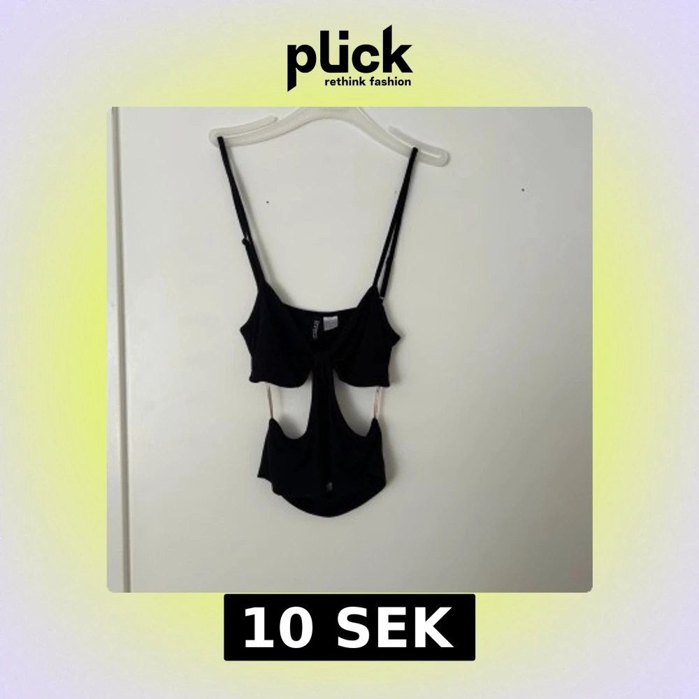 Trendig svart croppad topp med cut-out detaljer och smala axelband. Toppen har en unik design med öppningar framtill och passar perfekt till en snygg outfit.