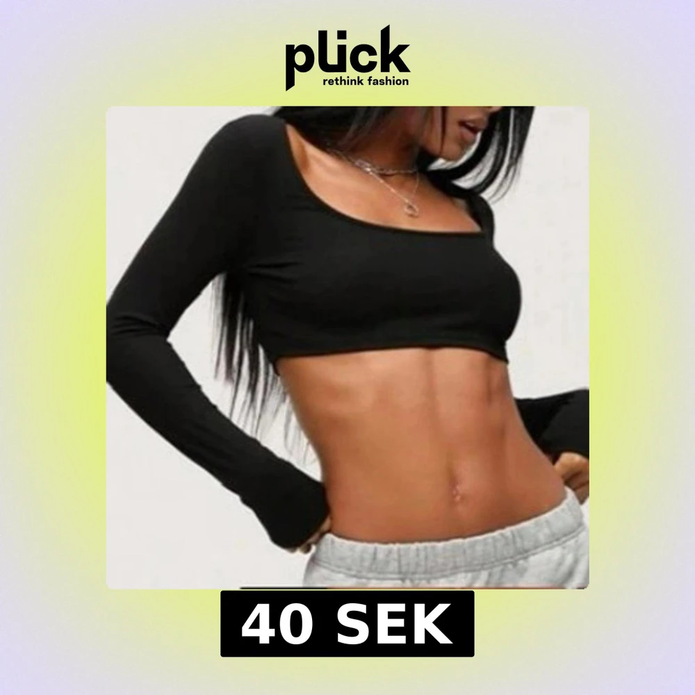 Snygg svart croppad topp med långa ärmar. Perfekt för en trendig look. Passar bra till både jeans och kjol.🤩