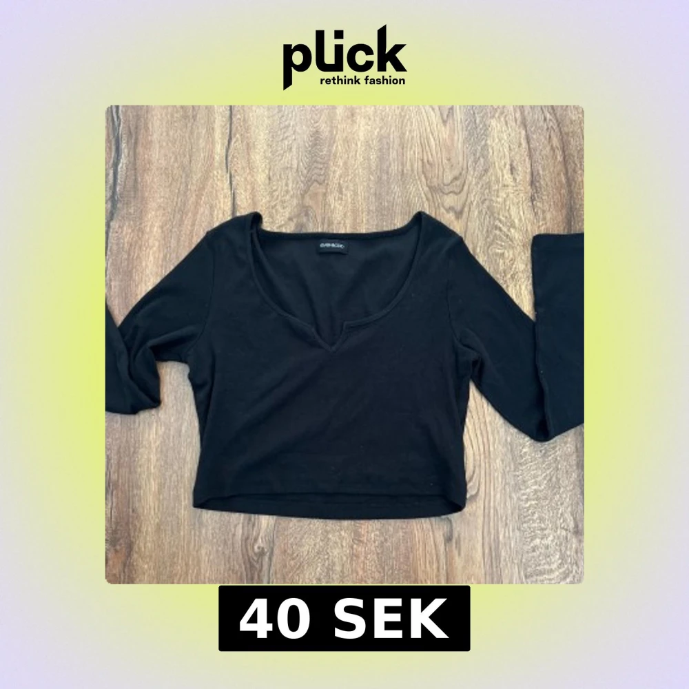 Svart croppad topp från Even & Odd med lång ärm och djup v-ringning. Enkel och stilren design som passar perfekt till jeans eller kjol.