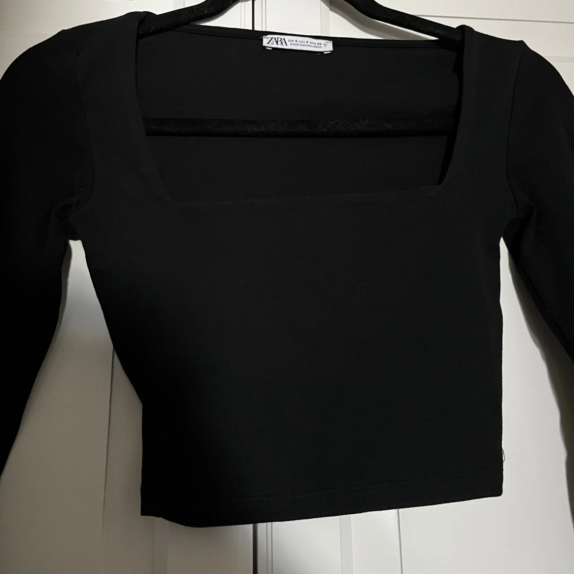 Supersöt långärmad Kroppad tröja från Zara med square neck line! Aldrig använd!