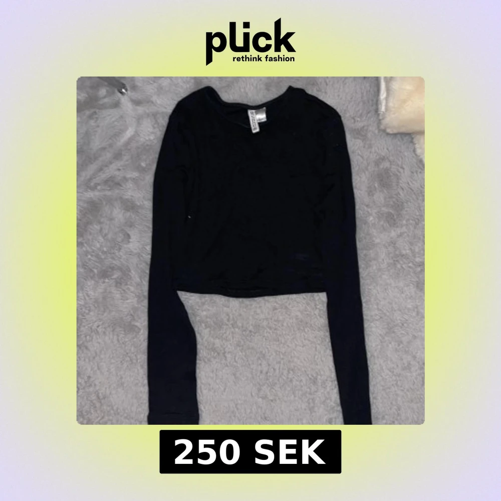 Svart långärmad cropped topp från H&M Basic, modell DIVIDED. Croppad passform med rund halsringning och mjukt, stretchigt material som sitter skönt mot kroppen. Perfekt att styla med jeans eller kjol för en clean look.