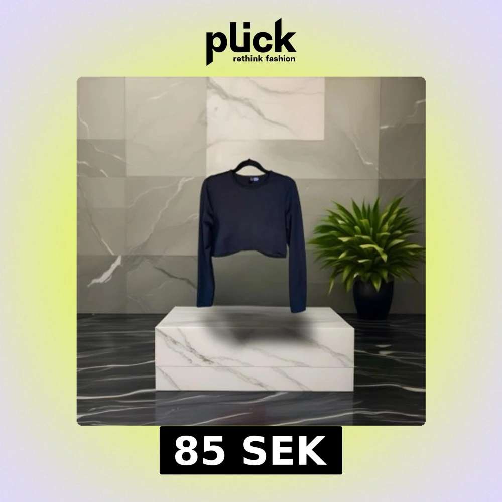 Svart croppad topp från H&M Divided med långa ärmar och rund halsringning. Tunt ribbat material. Tappat formen lite nertill
