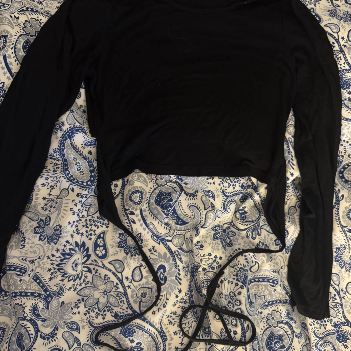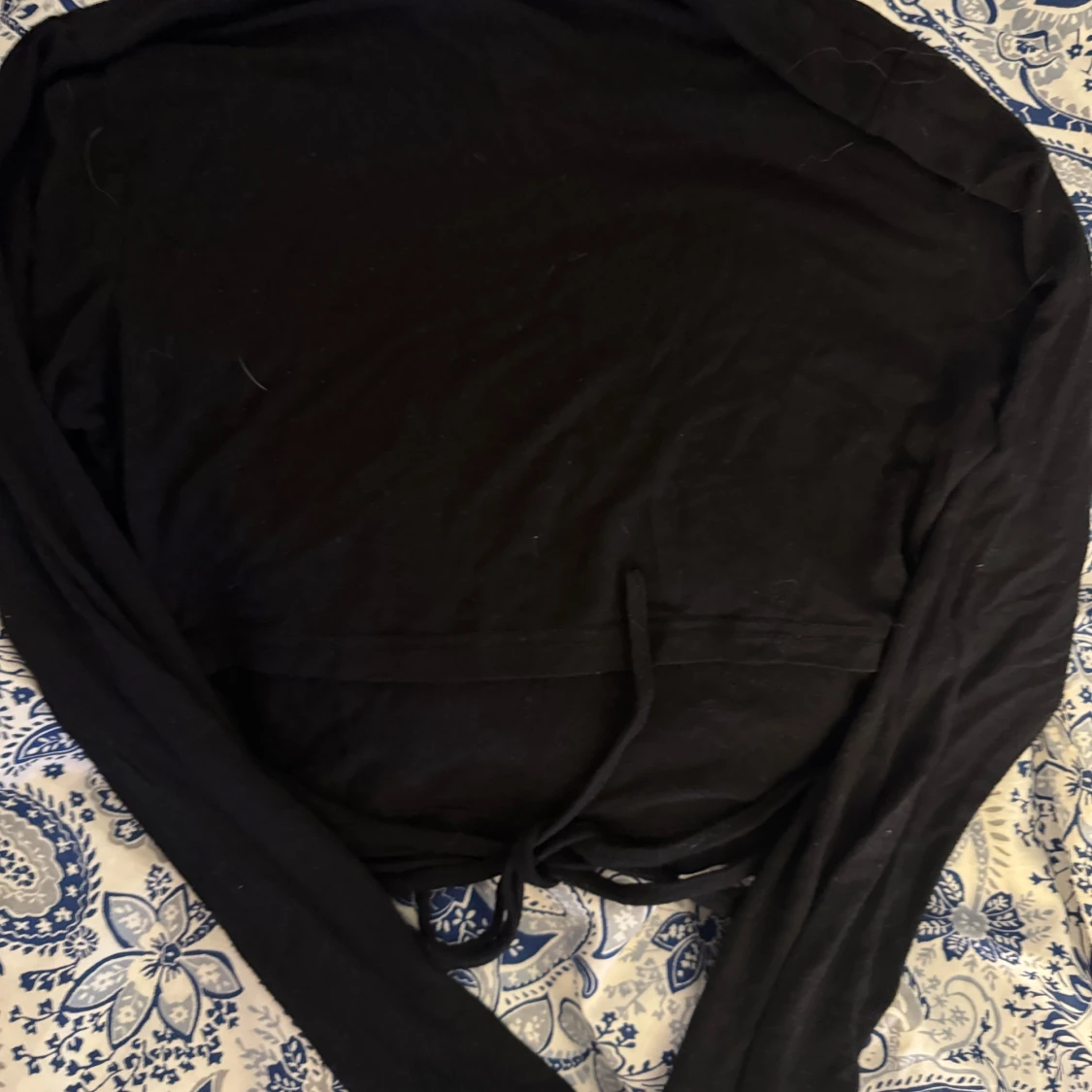 Svart långärmad croppad topp med knytband i midjan. Enkel och stilren design som passar till många olika outfits. Mjukt och stretchigt material för en bekväm känsla.