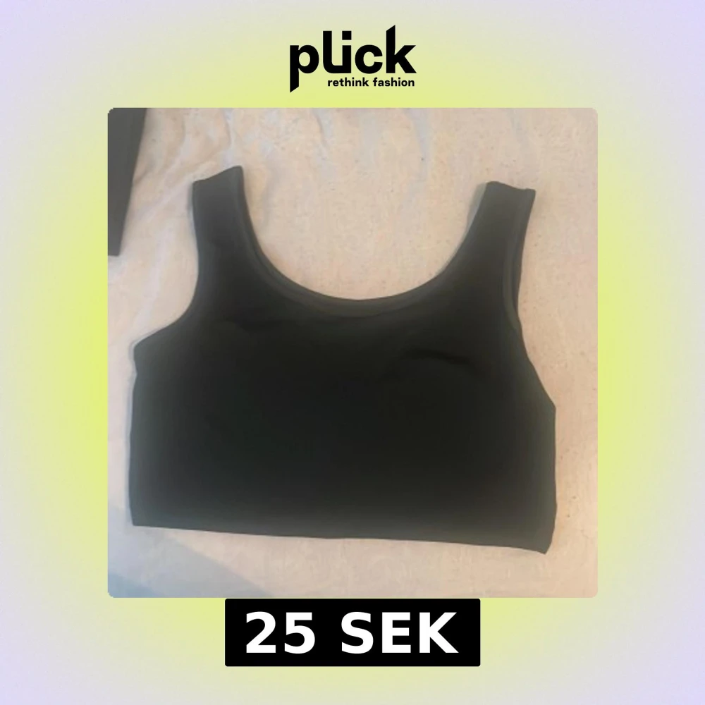 Säljer en enkel och stilren svart croppad linnetopp med breda axelband och rund halsringning. Perfekt att matcha med jeans eller kjol för en avslappnad look.
