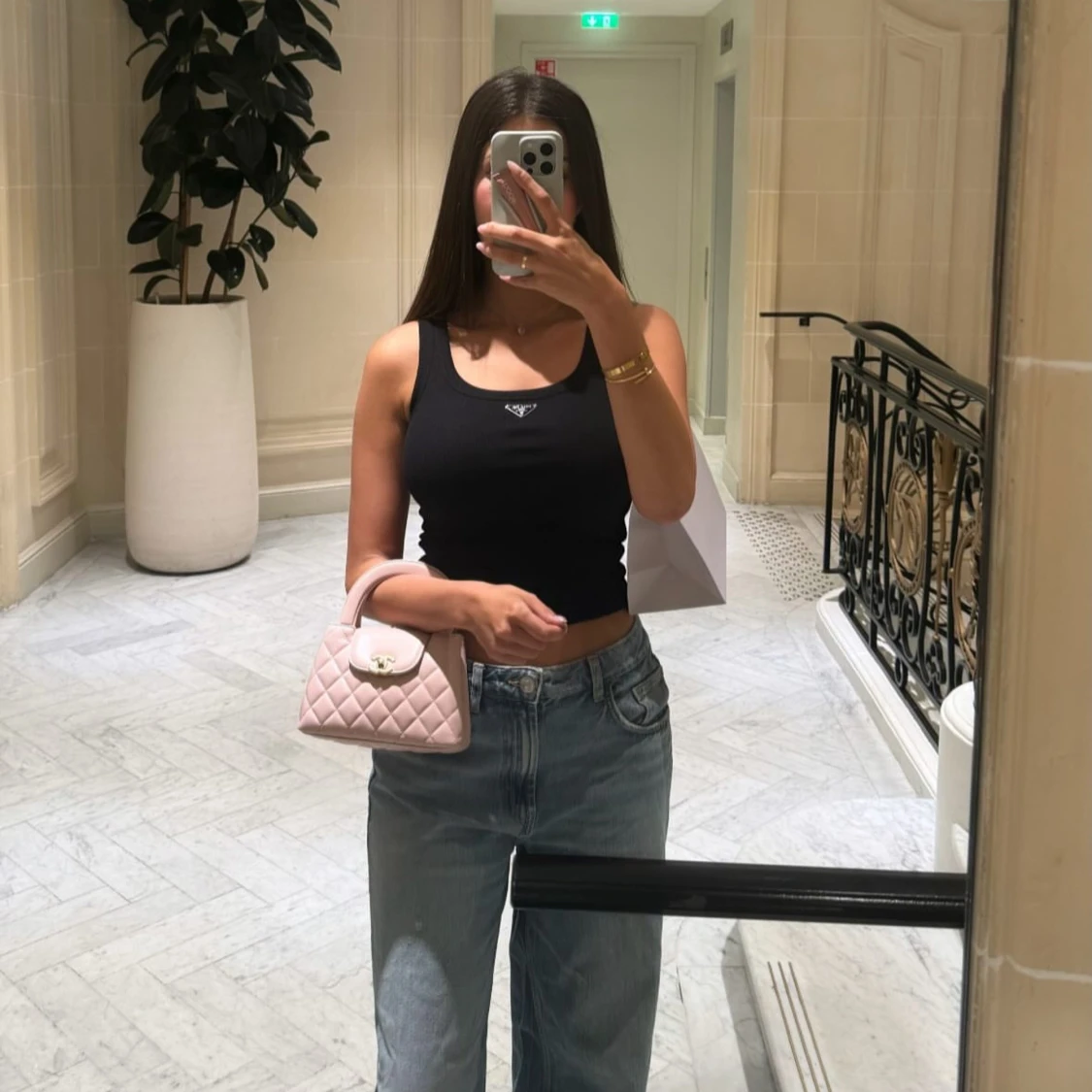 Säljer en svart croppad linnetopp från Prada med diskret logga framtill. Toppen har en tight passform så är mer som en XS men jag som är S har kunnat ha den