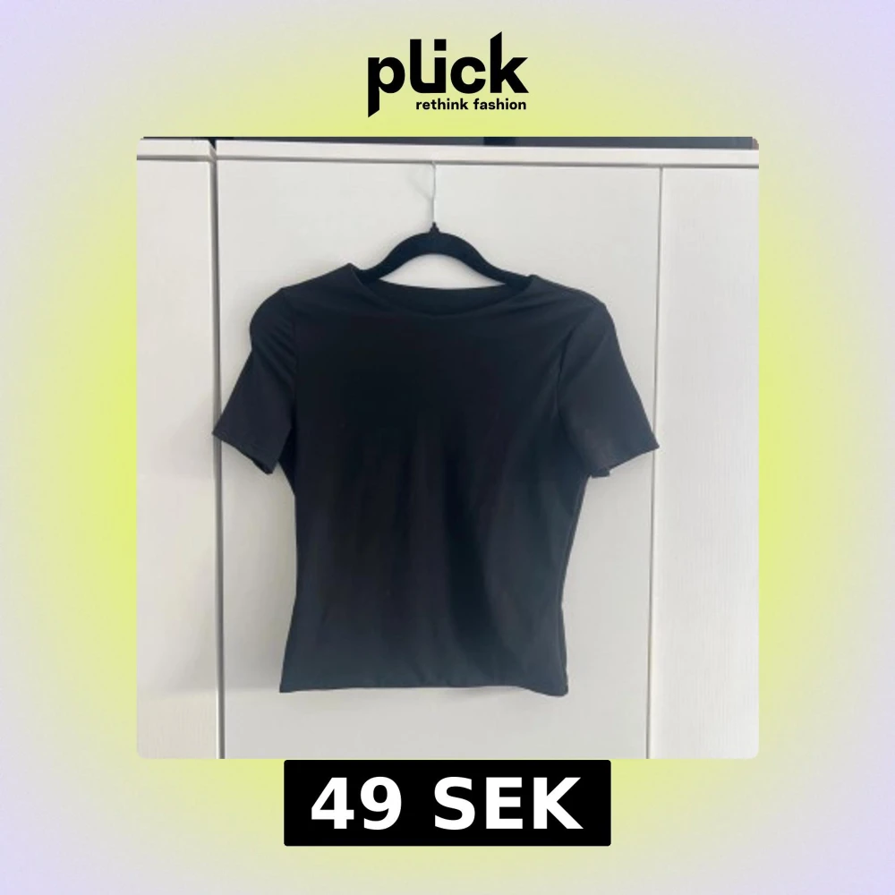 En stilren svart croppad tight topp från SHEIN med rund halsringning och korta ärmar. Toppen har en tight passform och är perfekt att matcha med höga jeans eller kjol. Enkel och clean design utan synliga detaljer eller mönster. Finns inga lappar i men den passar xs/s!