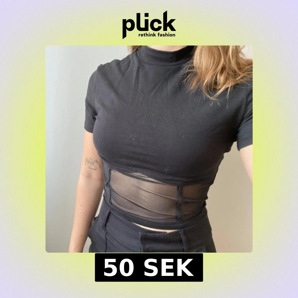 Snygg svart croppad topp från NA-KD med korta ärmar och en transparent mesh-detalj i midjan. Perfekt för en trendig look och på fest.