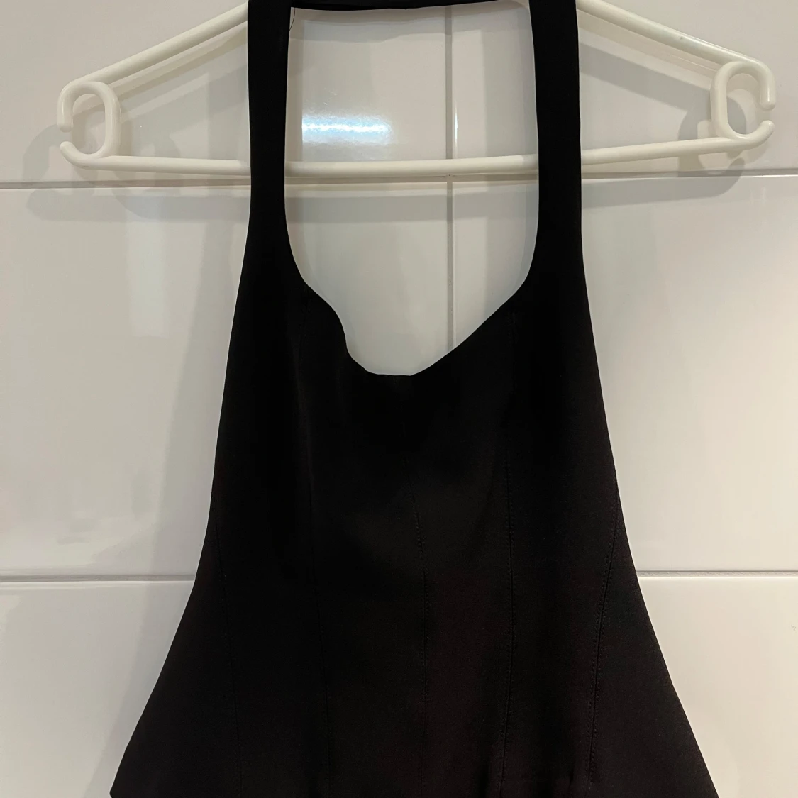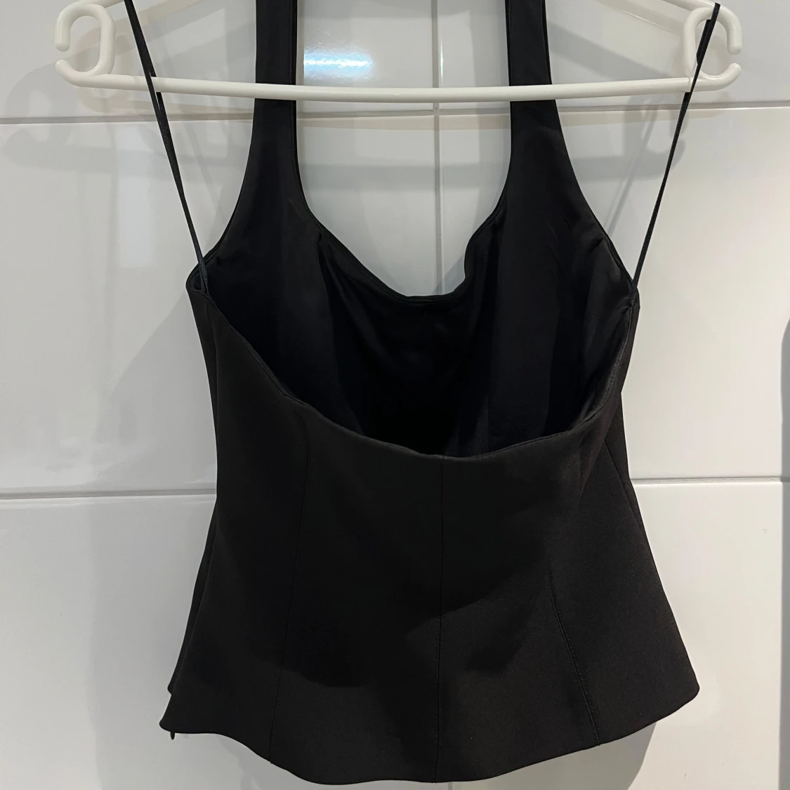 Säljer en svart croppad topp från Zara med breda axelband och draperad halsringning. Toppen har en figurnära passform och är perfekt att styla till olika outfits. Nyskick. Aldrig använd!