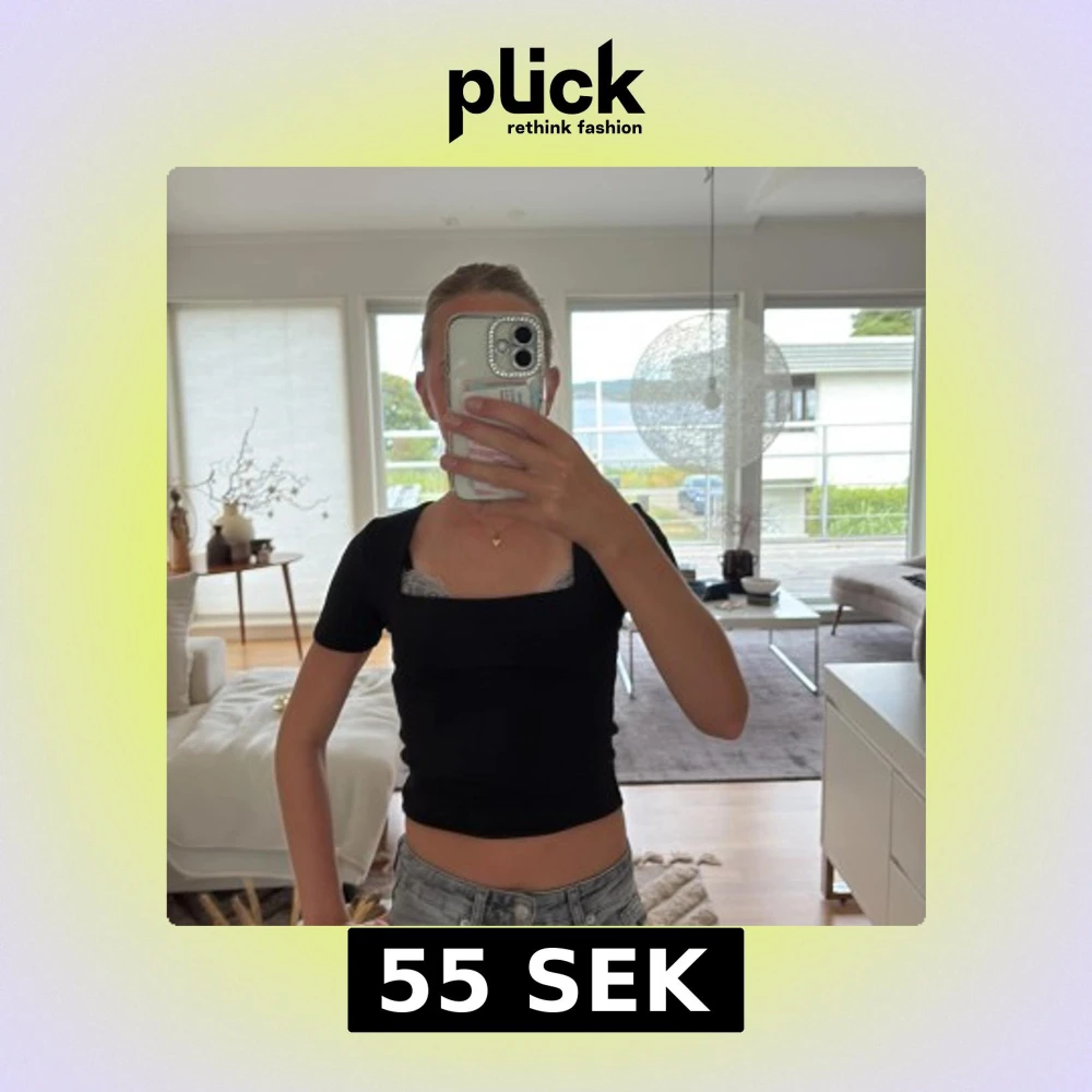 Säljer en svart croppad topp med fyrkantig ringning och korta ärmar. Toppen är figurnära och har en enkel, stilren design som passar perfekt till jeans eller kjol. Materialet känns mjukt och stretchigt, vilket gör den bekväm att bära hela dagen.