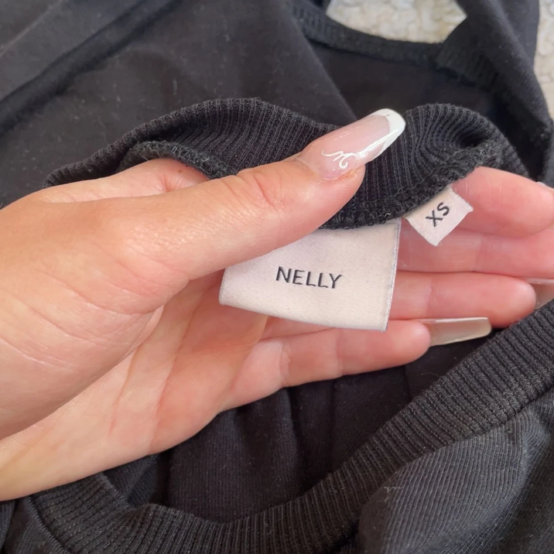 Svart croppad topp från Nelly med korta ärmar och snygg knytning i ryggen. T-shirten har en enkel design men sticker ut med sin öppna rygg och knytband.