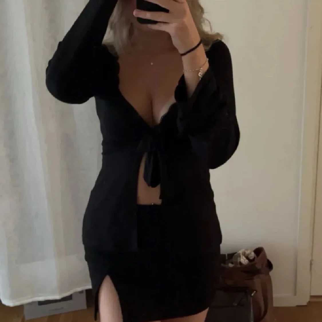 Snygg svart långärmad Design By Si topp. Storlek Xs/S. Köpt för ungefär 400kr.