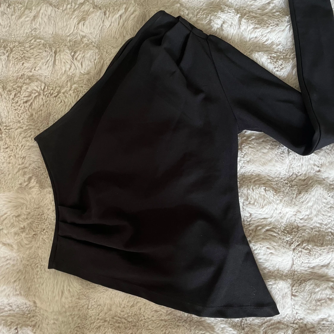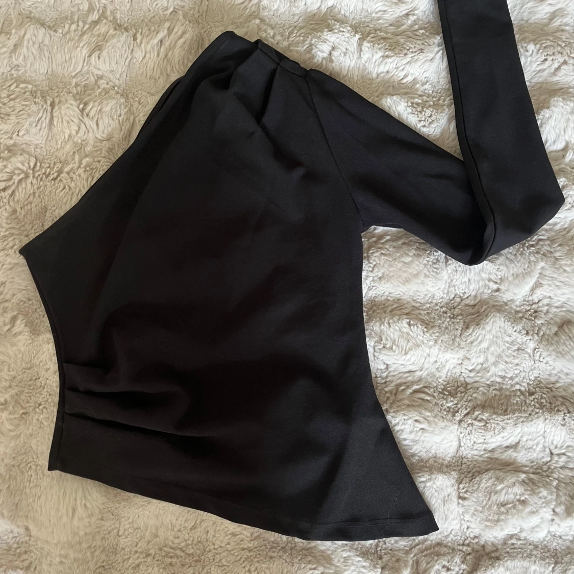 Snygg svart enärmad topp från Gina. Den är tajt i armen och går lite ut i midjan. Passar perfekt som festtopp men även till vardags!