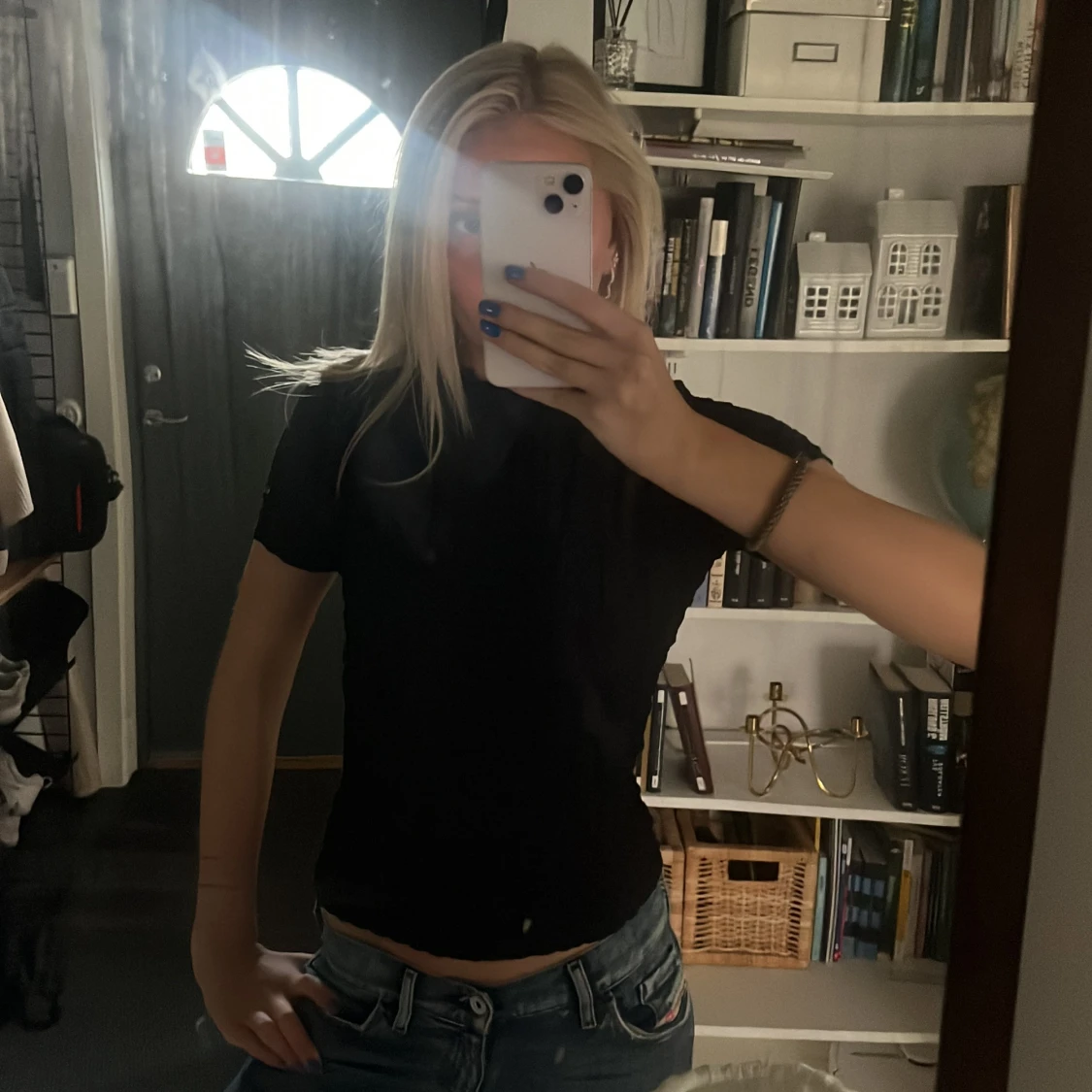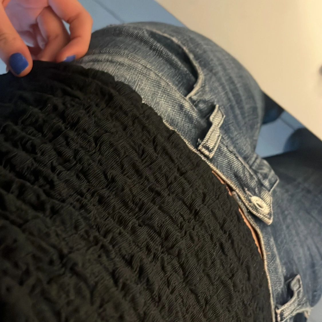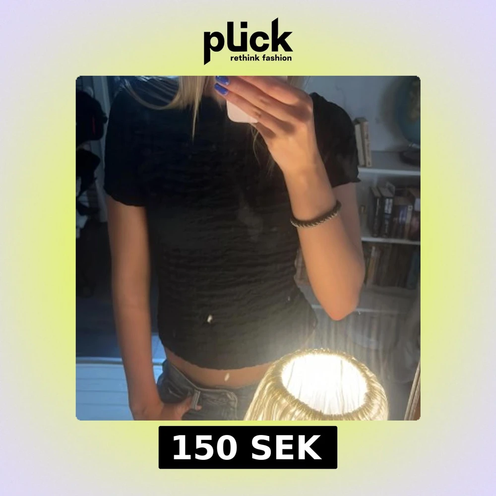 Svart topp med skrynkligt material, as snygg och lĂ€tt att styla!đ€