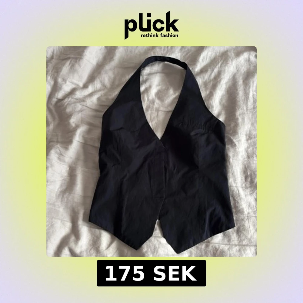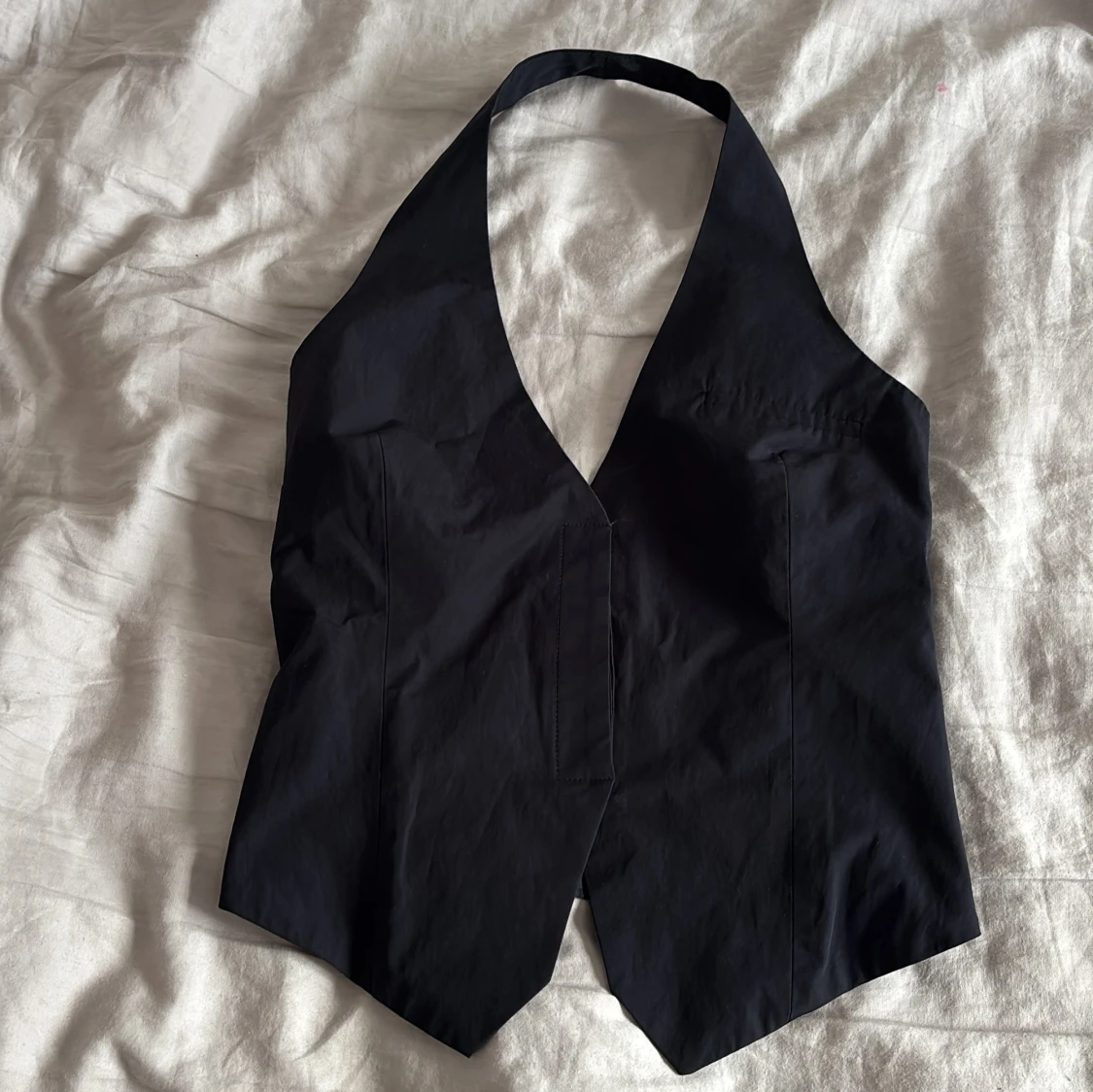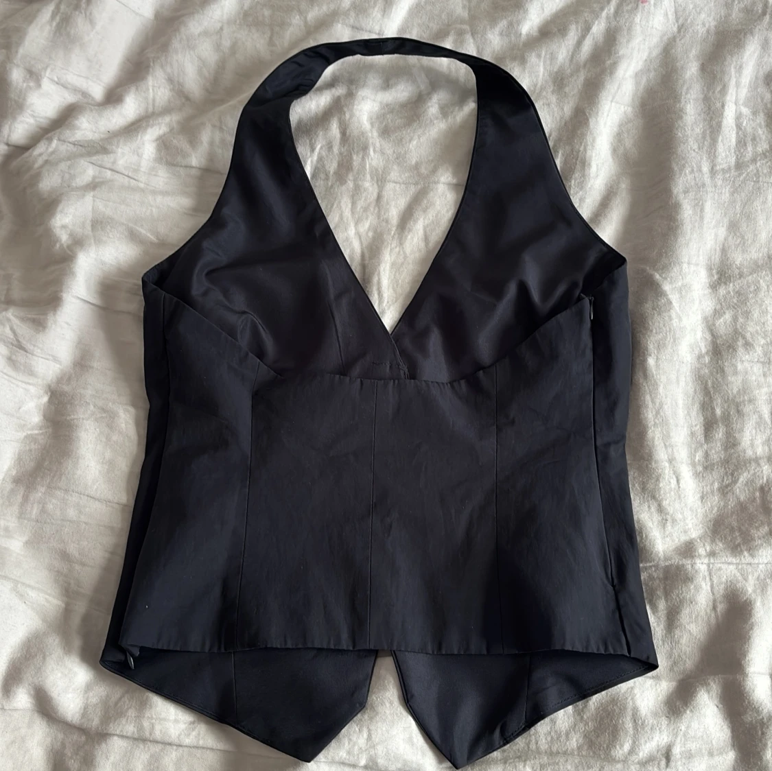 Säljer en svart väst med djup v-ringning och omlottkänsla. Super snygg och perfekt festtopp. Har även en dragkedja vid sidan, knappt använd❣️